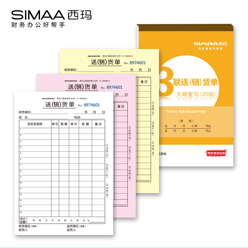 - 商品名称:西玛(SIMAA)三联送货单 送(销)货单 32开 无碳复写单据130*190mmSS05031210本装