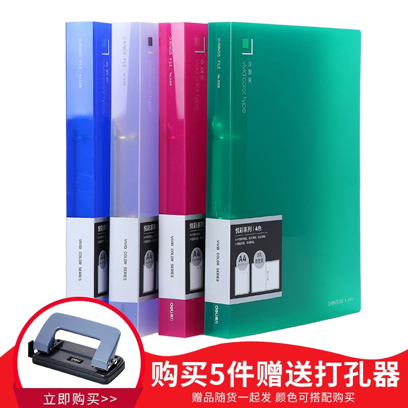 得力(deli)A4/60页高档款资料册 学生试卷收纳册时尚彩色活页孕检插袋文件夹5067 ¥16.90