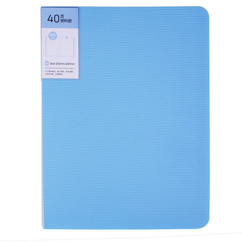 得力(deli)得力彩色资料册30/40/60页硬塑料试卷资料夹册A4办公用插页文件夹蓝色40页资料册(5066)