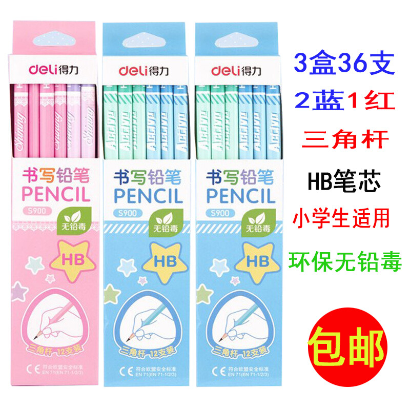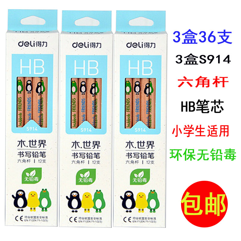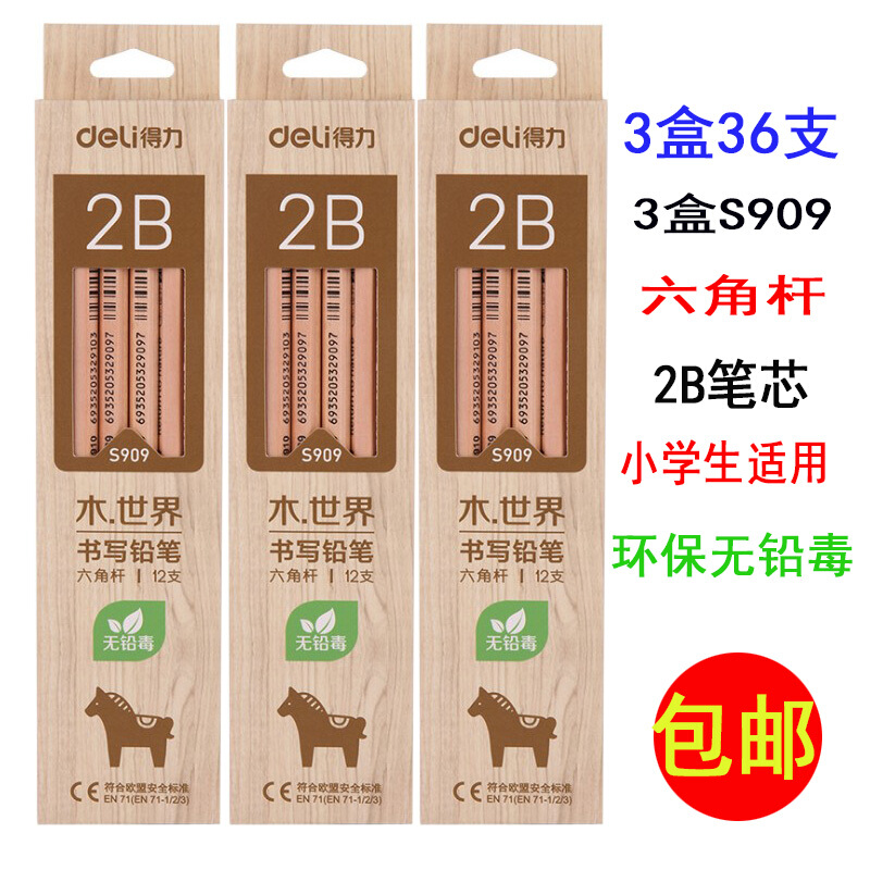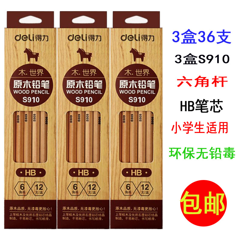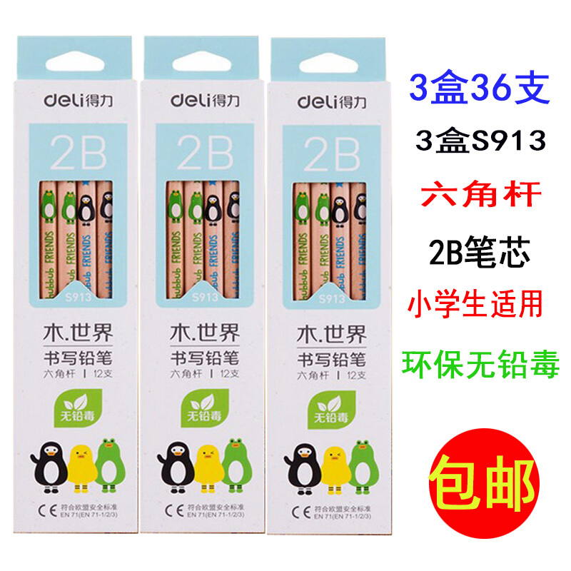 得力铅笔 原木三角六角HB 2B小学生铅笔儿童彩色12支包装批发S9213盒六角2H