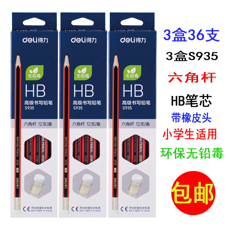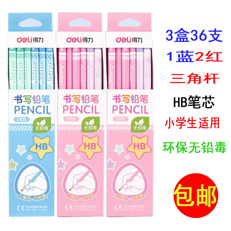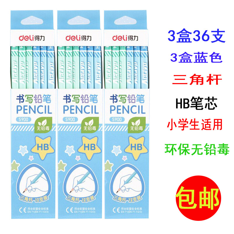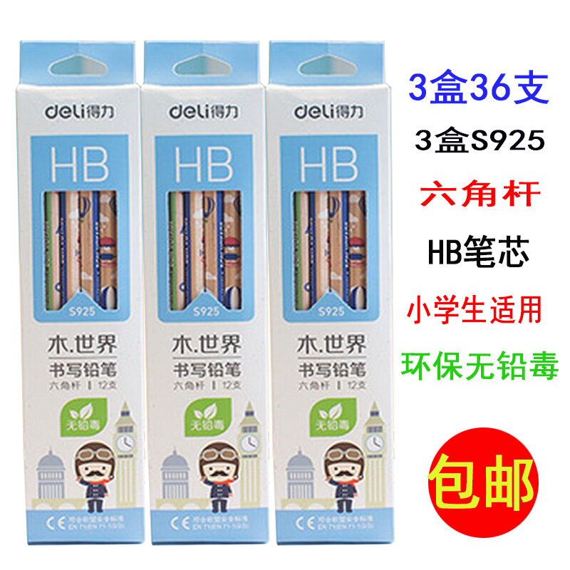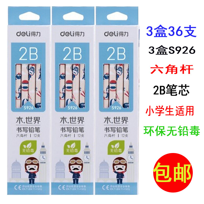 得力铅笔 原木三角六角HB 2B小学生铅笔儿童彩色12支包装批发S9213盒六角2H