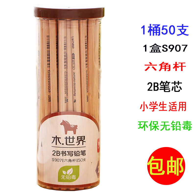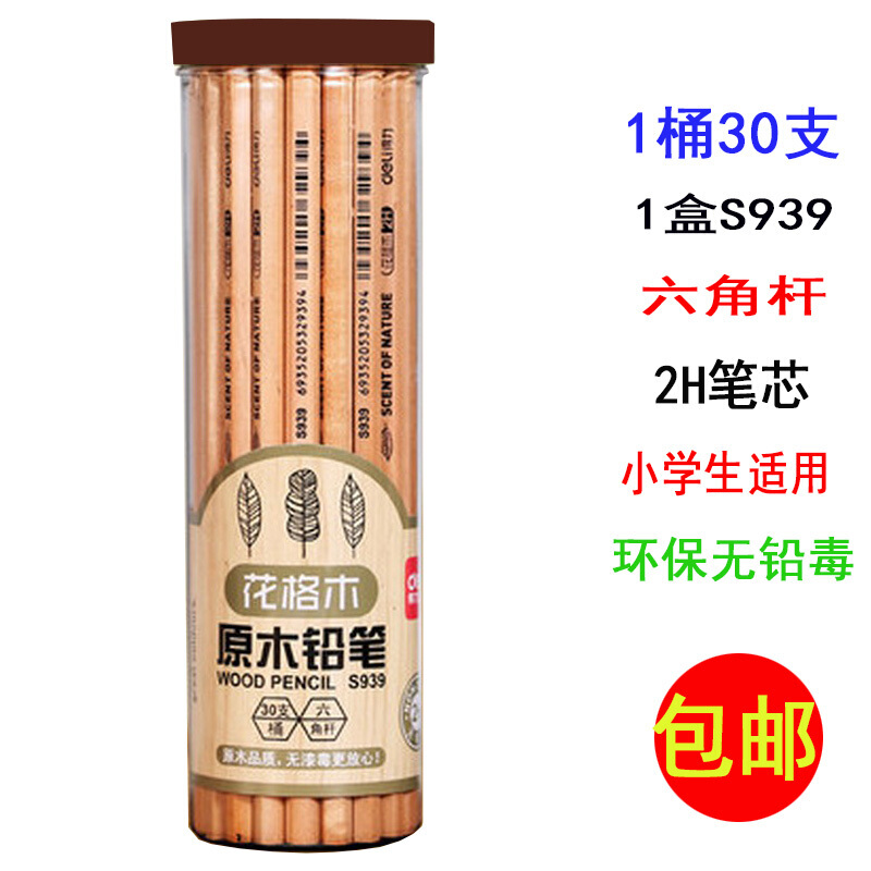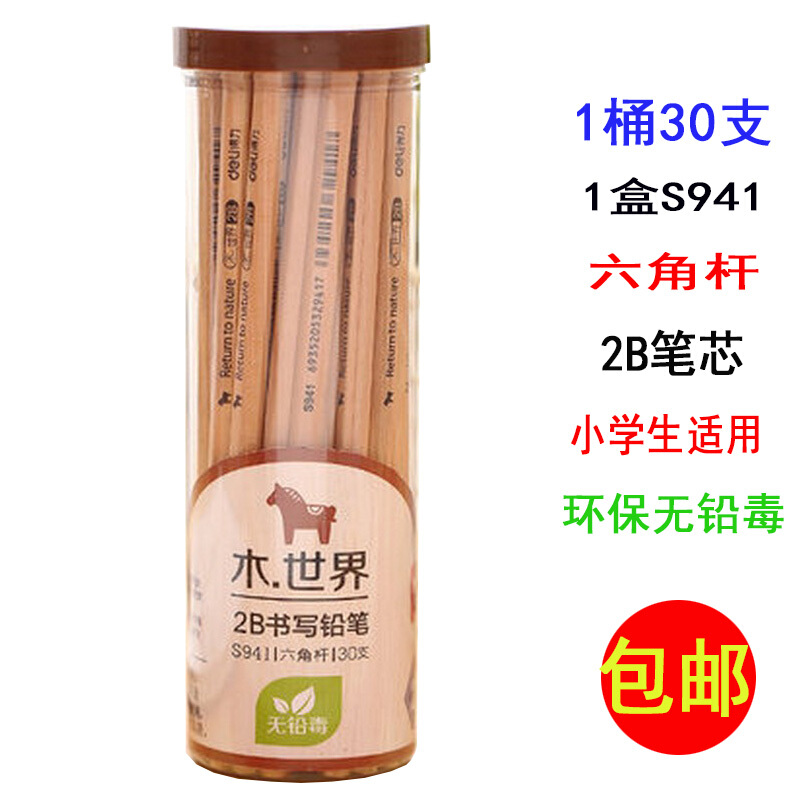 得力(deli)木世界系列HB六角笔杆书写绘画素描铅笔30支/桶S940-HB