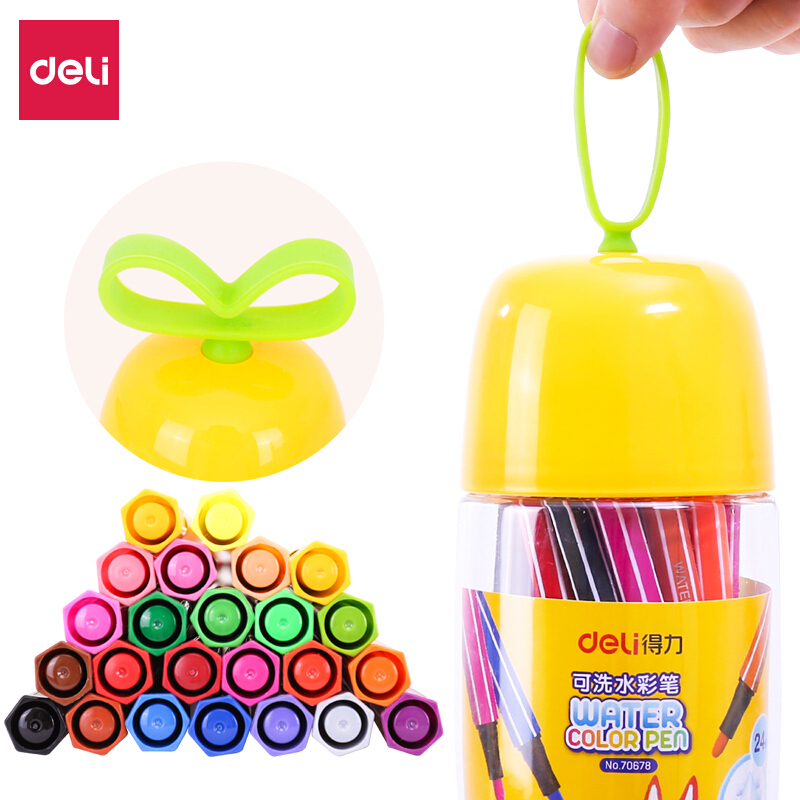 得力(deli) 7067 绚丽多彩可洗水彩笔/绘画笔 24色/筒包装颜色随机