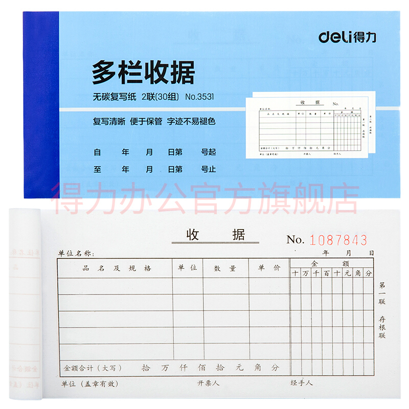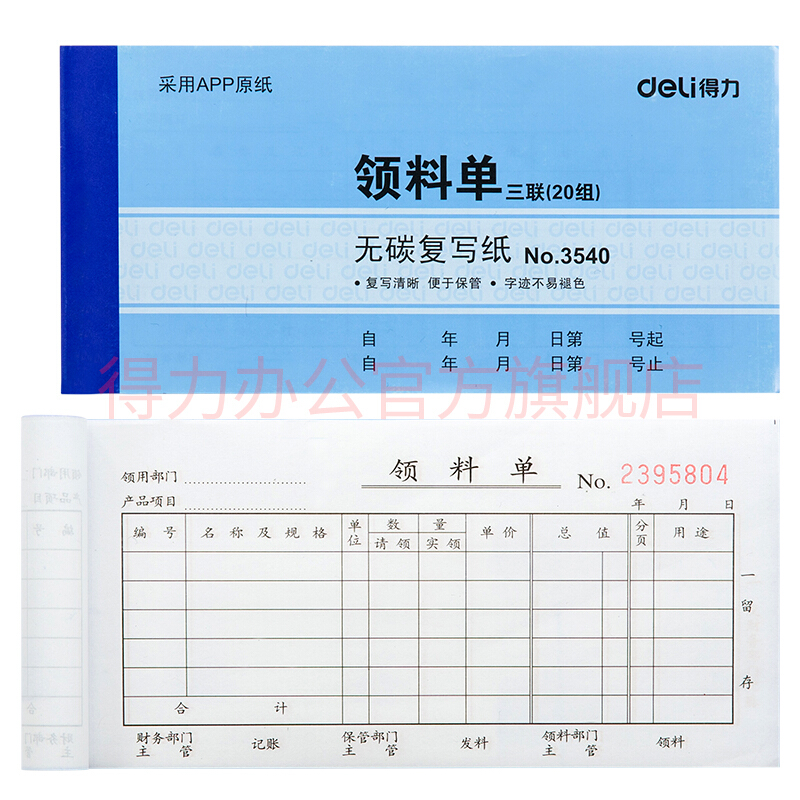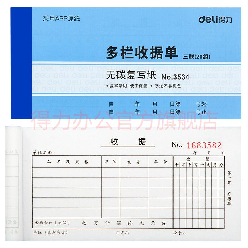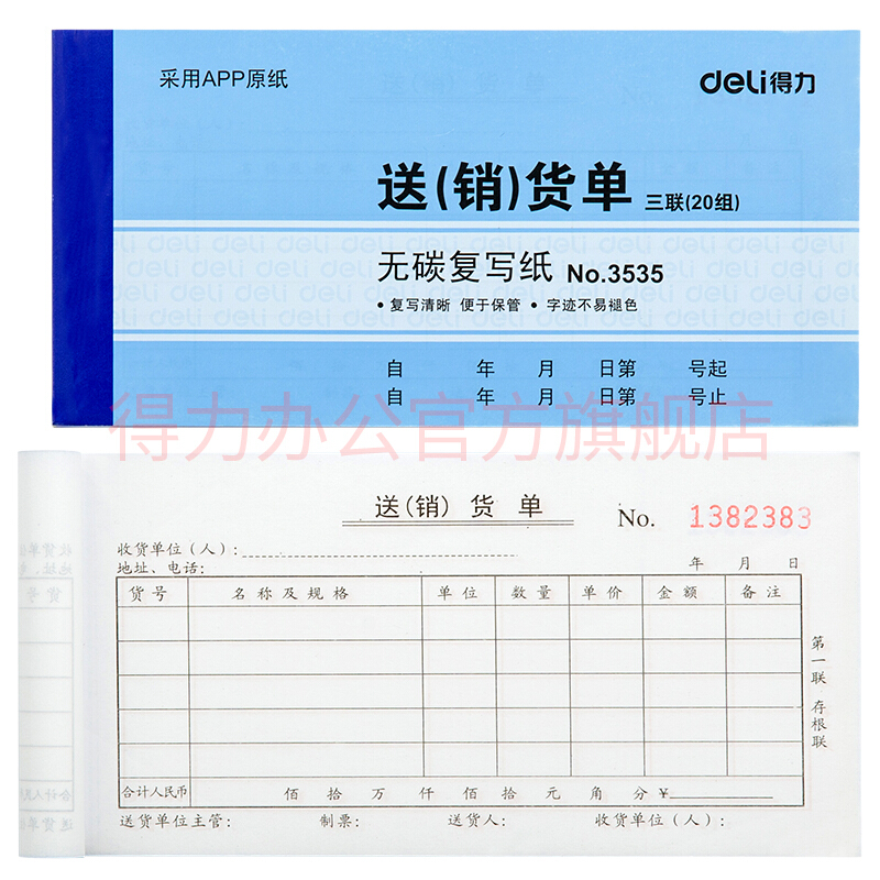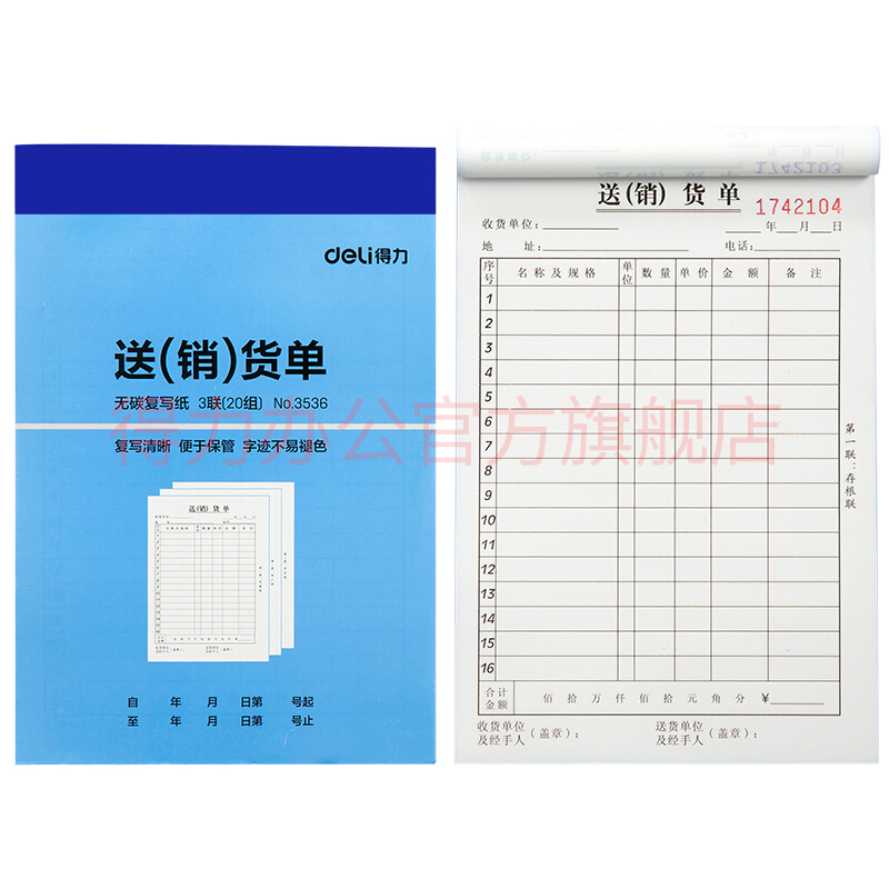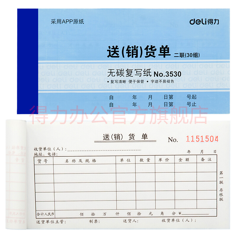 - 商品名称:得力(deli) 单据票据收据领料出库入库送销货单 无碳复写纸财务办公用品3530二联送(销)货单十本装
