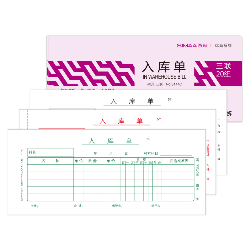 西玛(SIMAA)RK132三联入库单 54K 175×83mm 20组10本装优选时尚版无碳复写销售入库进货单据