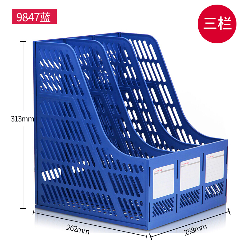 - 商品名称:得力 文件框三联 塑料文件架 资料架文件栏 文件筐 收纳架三联黑色蓝色9847Z