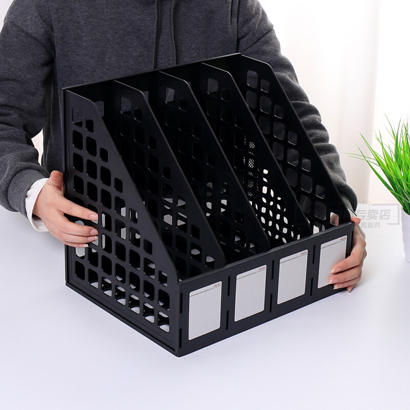 得力办公四联文件框a4桌面收纳书立架资料架文件筐加厚文件整理置物架收纳盒档案筐78983-高强度四联带笔筒-深灰