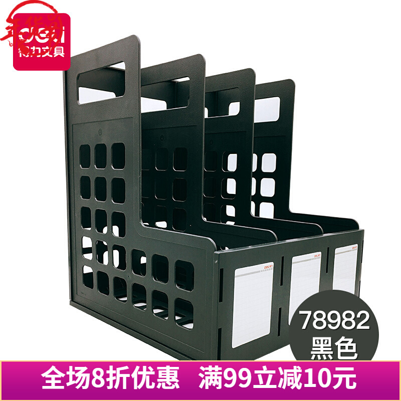 得力(deli) 文件架收纳文件栏筐办公用品创意桌面文件框资料架三联黑色78990