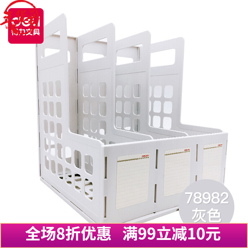 得力(deli) 文件架收纳文件栏筐办公用品创意桌面文件框资料架三联灰色78990
