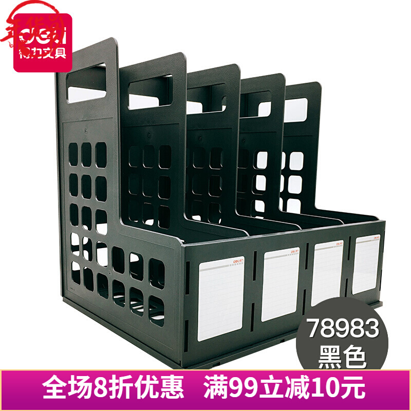 得力文件框四联桌面资料架文件整理置物架塑料办公多层收纳栏框架78992(黑色)