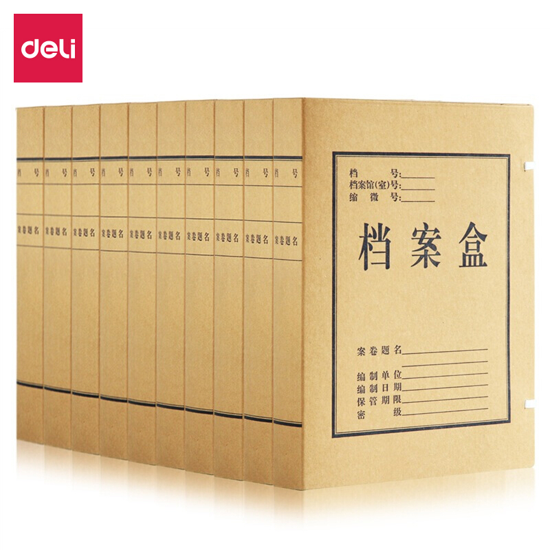 - 商品名称:得力(deli)10只50mm纯浆牛皮纸档案盒 久存耐用文件资料收纳盒加厚党建材料整理盒办公用品5925