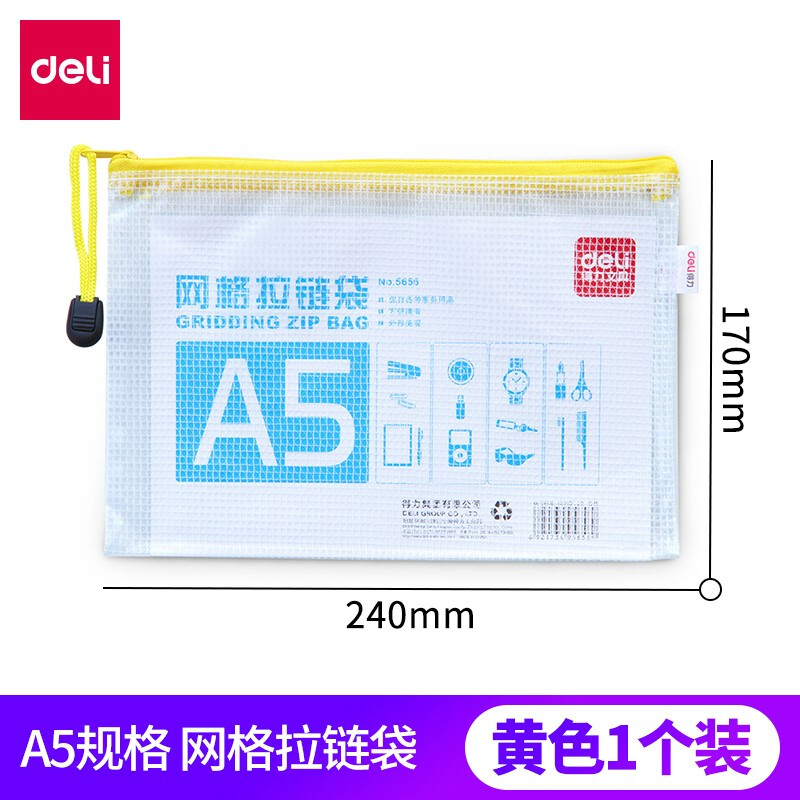 得力(deli) 票据袋 拉边袋 文件袋 收纳袋彩色A4 A5 B5PVC网格拉链袋办公用品A5黄色/1个5656
