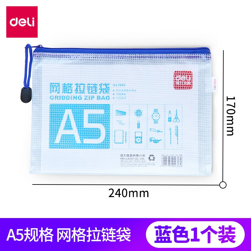 - 商品名称:得力(deli) 票据袋 拉边袋 文件袋 收纳袋彩色A4 A5 B5PVC网格拉链袋办公用品A5黄色/1个5656
