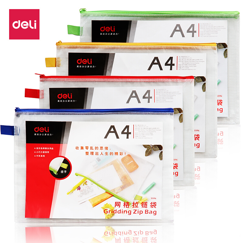 - 商品名称:得力(deli)B5防水网格拉链袋 彩色拉边袋 单个颜色随机 5594