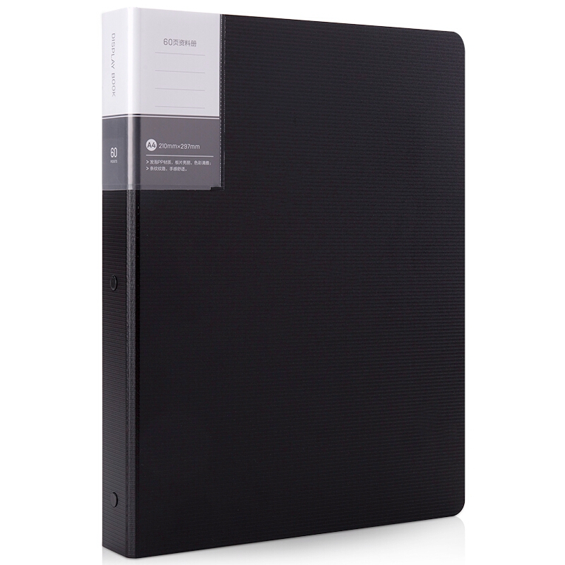 得力(deli)40页/60页A4资料册试卷乐谱活页文件册文件夹插页袋办公用品黑色60页5153