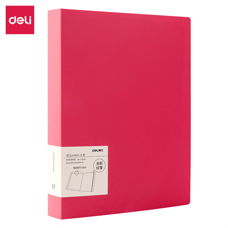 - 商品名称:得力(deli)A4/60页乐素彩色资料册 活页插袋文件夹 文件册学生试卷收纳袋办公用品72596红