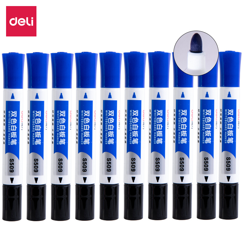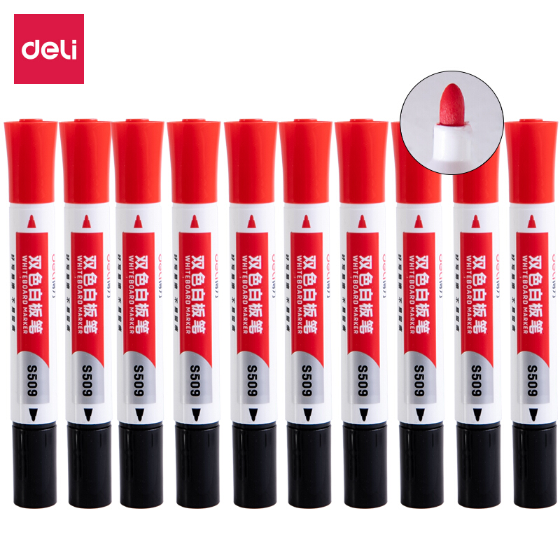 - 商品名称:得力(deli)双头双色白板笔 好写易擦 黑红组合 10支/盒DL-S509