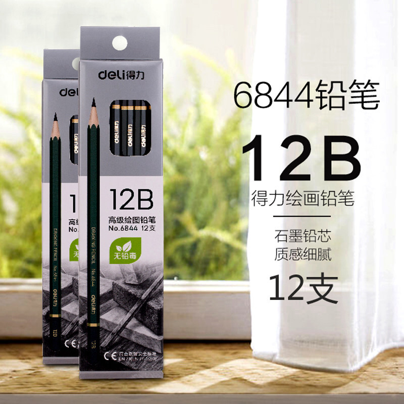 - 商品名称:得力绘画铅笔学生美术素描绘图速写用铅笔写字考试用笔 6844-12B