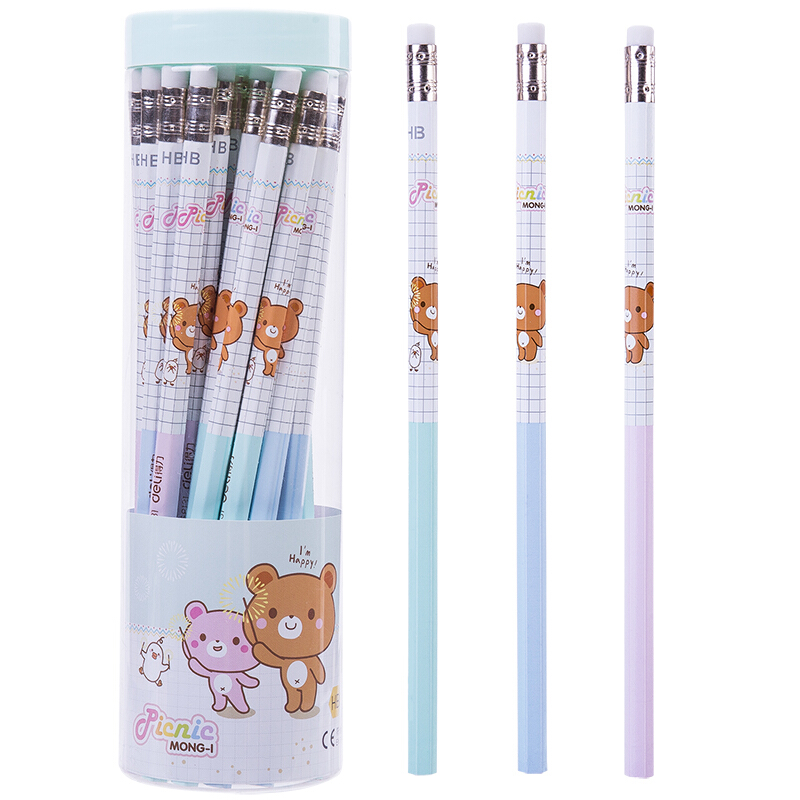 得力(deli)卡通熊30支HB书写绘画铅笔 带橡皮头58133