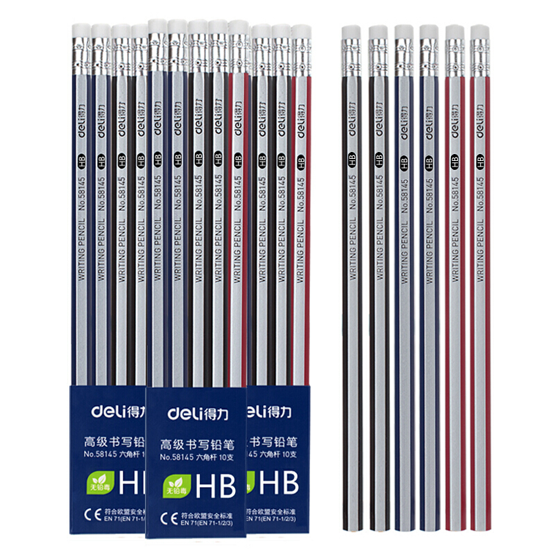 得力六角杆HB铅笔绘图2b2比涂卡笔绘画素描笔小学生儿童成人初学者涂鸦考试书写美术用品hb铅笔文58111(2盒24支2B)