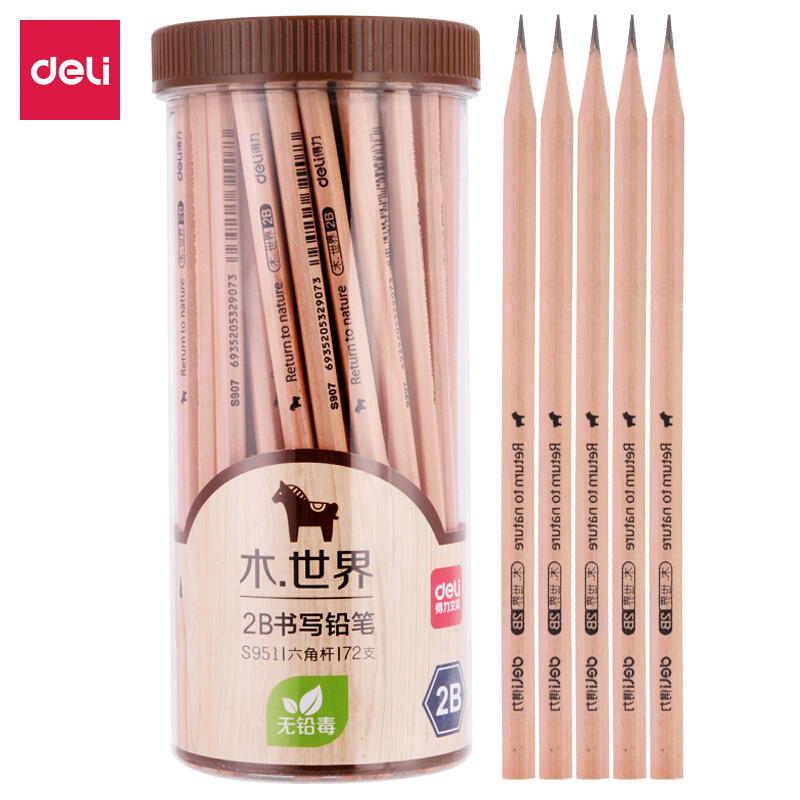 - 商品名称:得力(deli)木世界系列原木2B铅笔 素描绘图学生铅笔 72支/桶S951