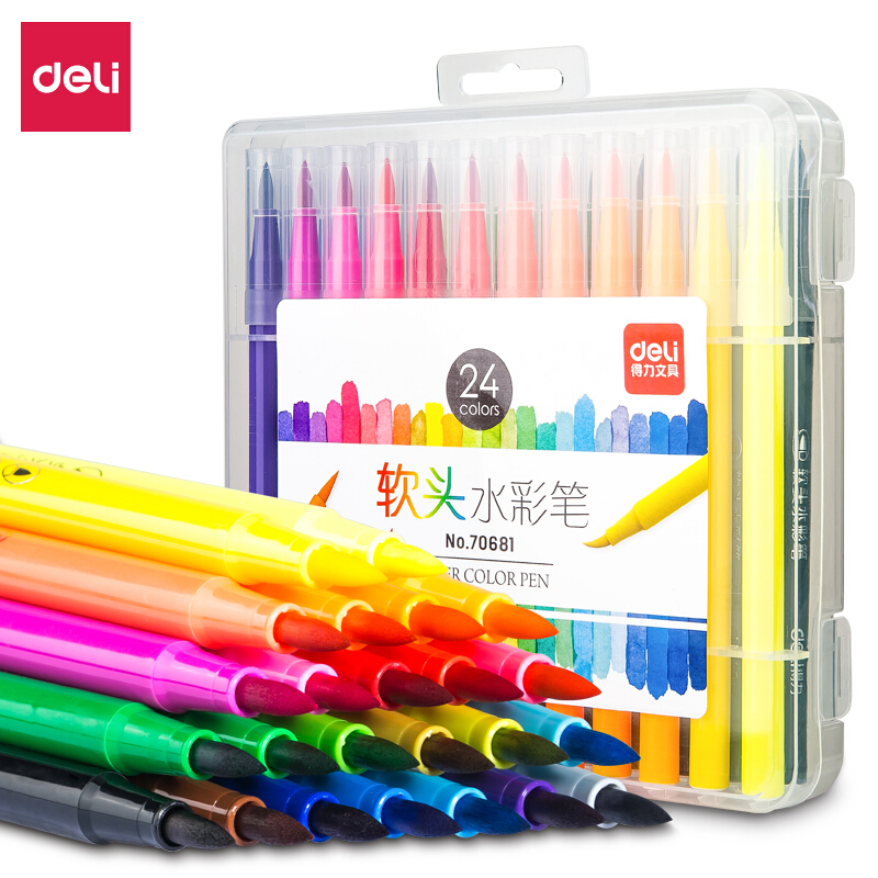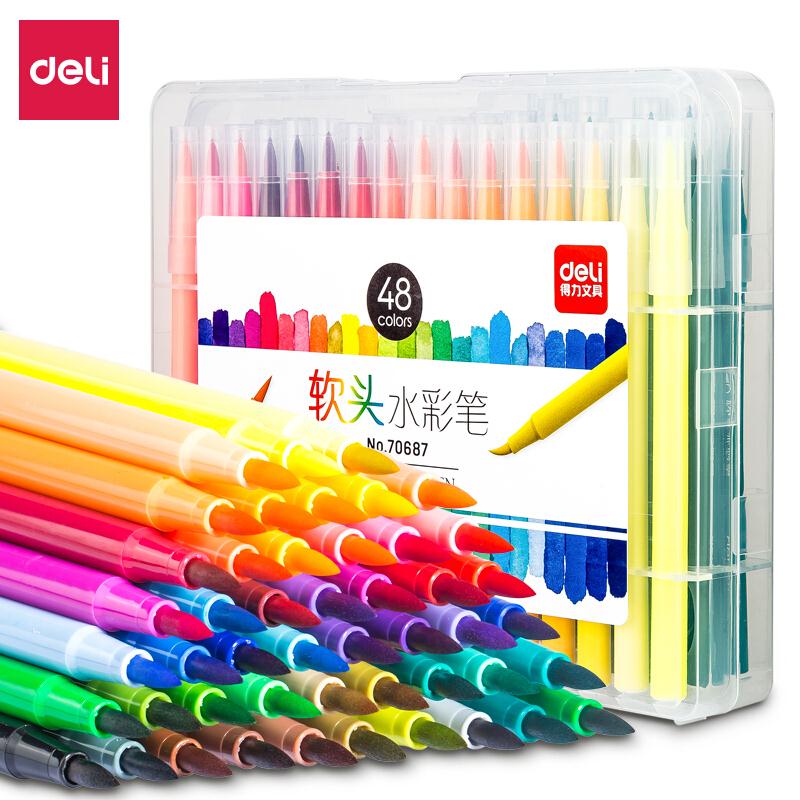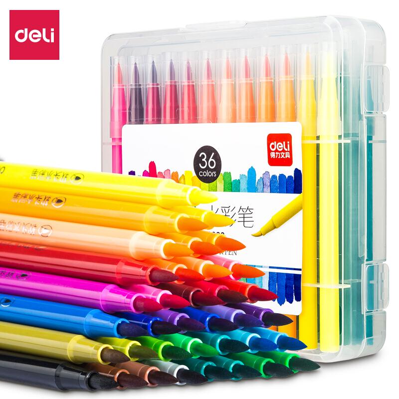 得力(deli)36色学生软笔头水彩笔 漫画插画上色笔尖刷头笔儿童绘画笔画画笔70686