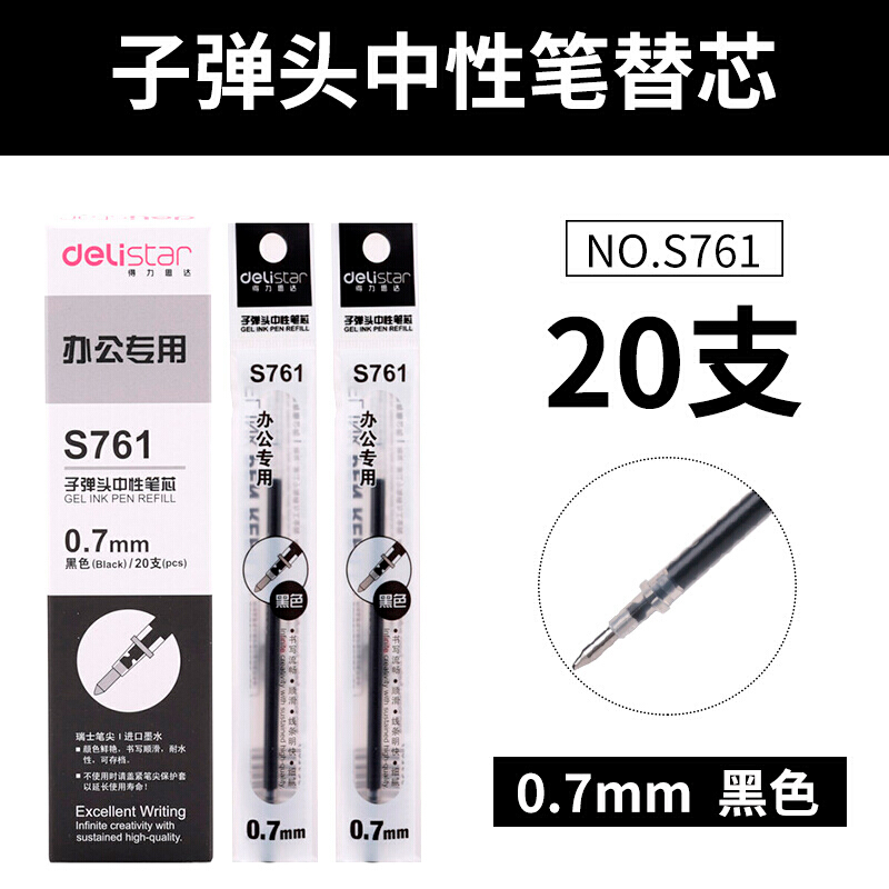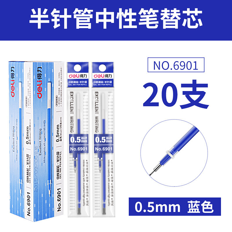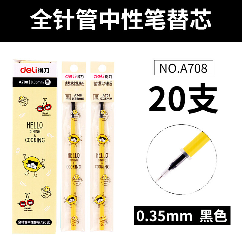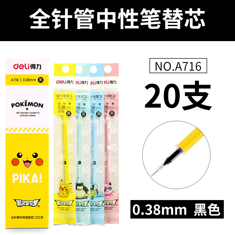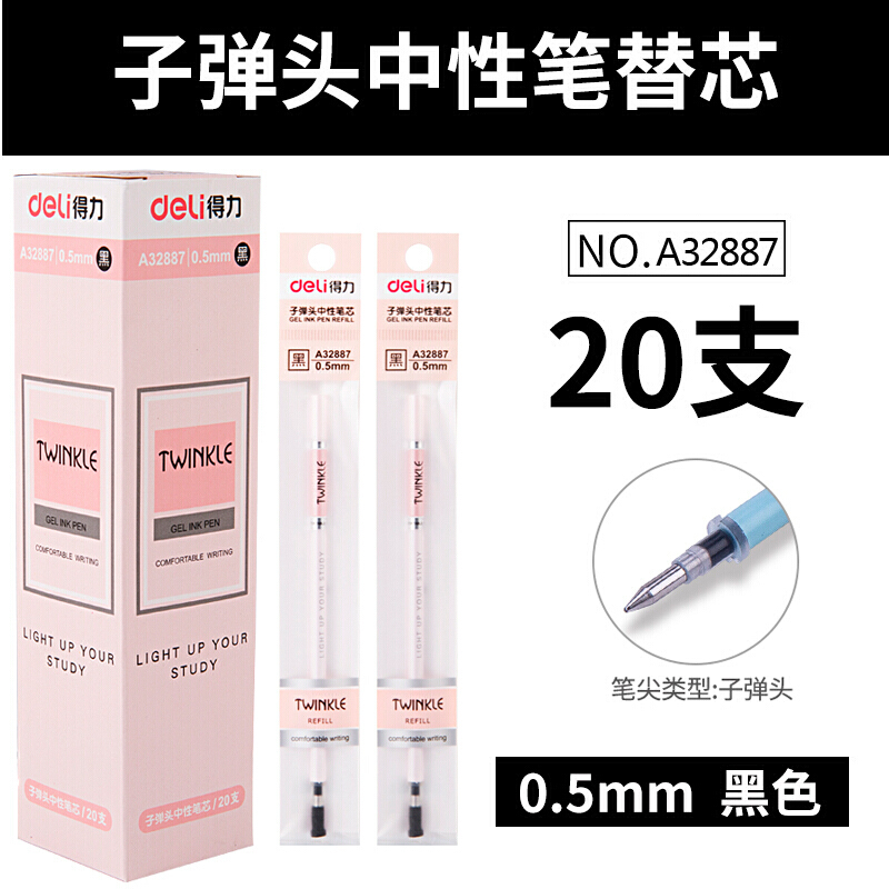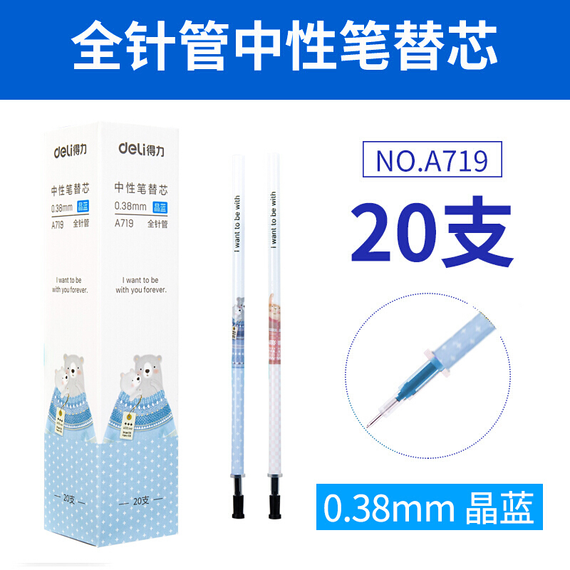 - 商品名称:得力中性笔芯批发0.5mm头黑色笔芯0.38替芯全针管水笔芯A32915黑色0.38全针管