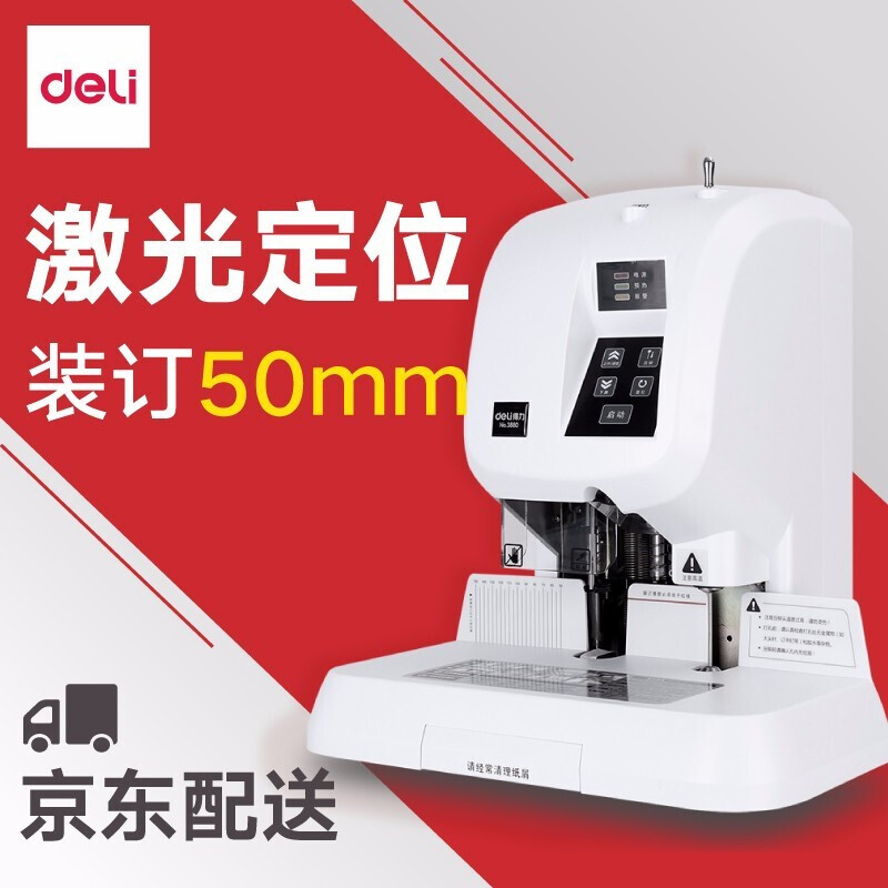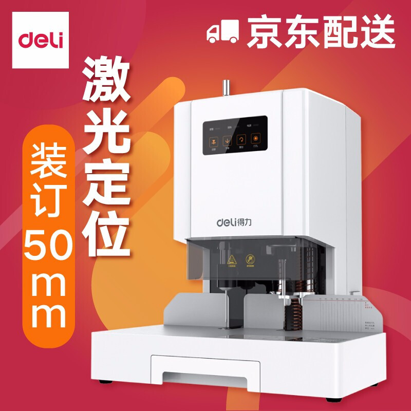 得力(deli)凭证装订机 财务装订机半自动/全自动打孔机热熔铆管14608新款自动装订机(可装订35mm)