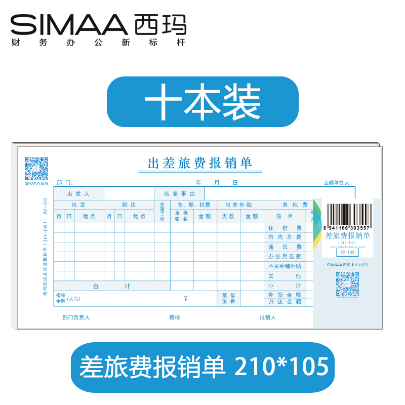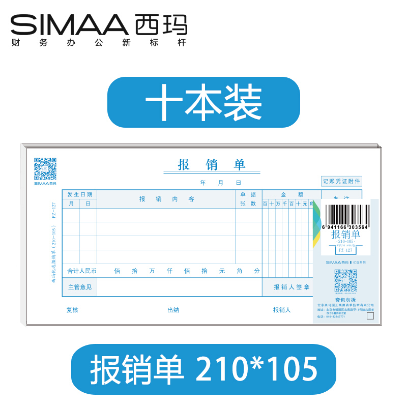 - 商品名称:西玛(SIMAA) 费用报销单据 35k/50张 210x105mm 10本/包pz-208记账凭证一包