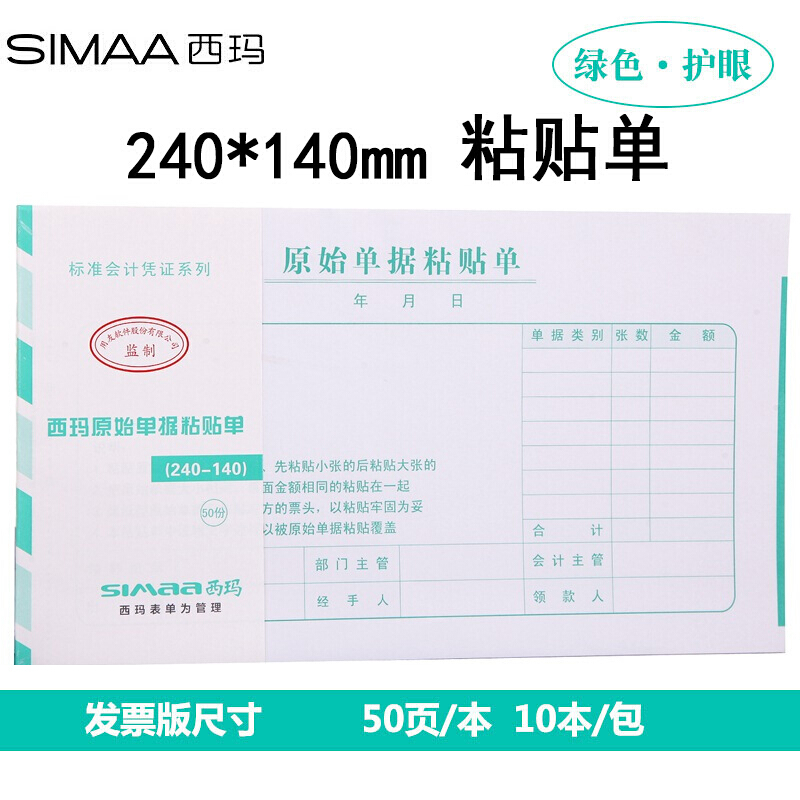 - 商品名称:西玛(SIMAA)原始单据粘贴单 240*140mm 50页/本10本/包借款审批支出报销单据财务专用通用会计记账凭证纸